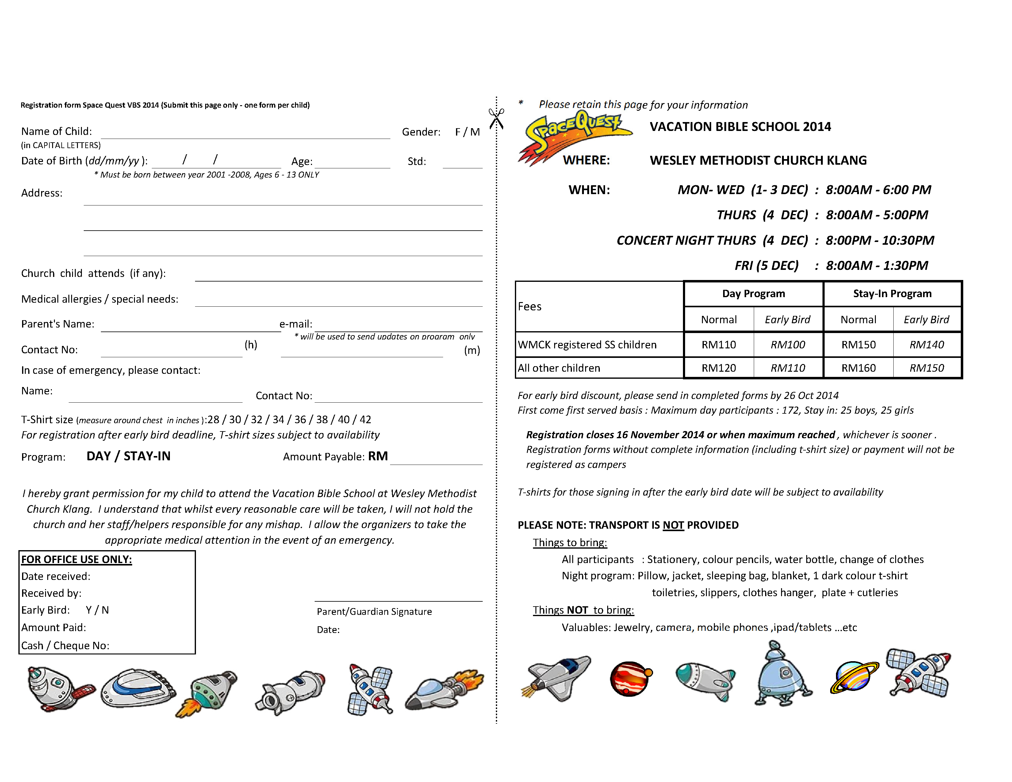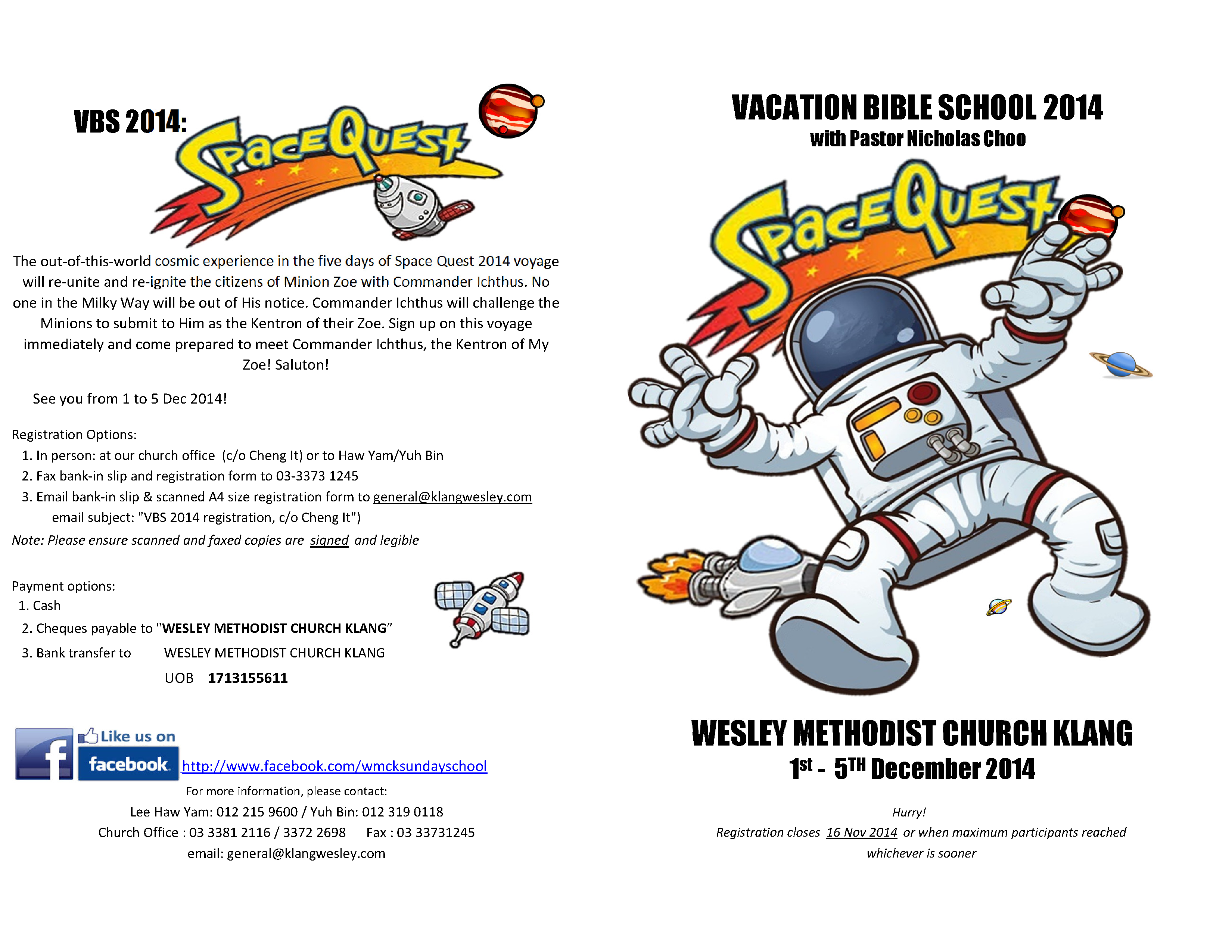 2. ONLINE – Click the link —> VBS 2014 – SpaceQuest Registration Form